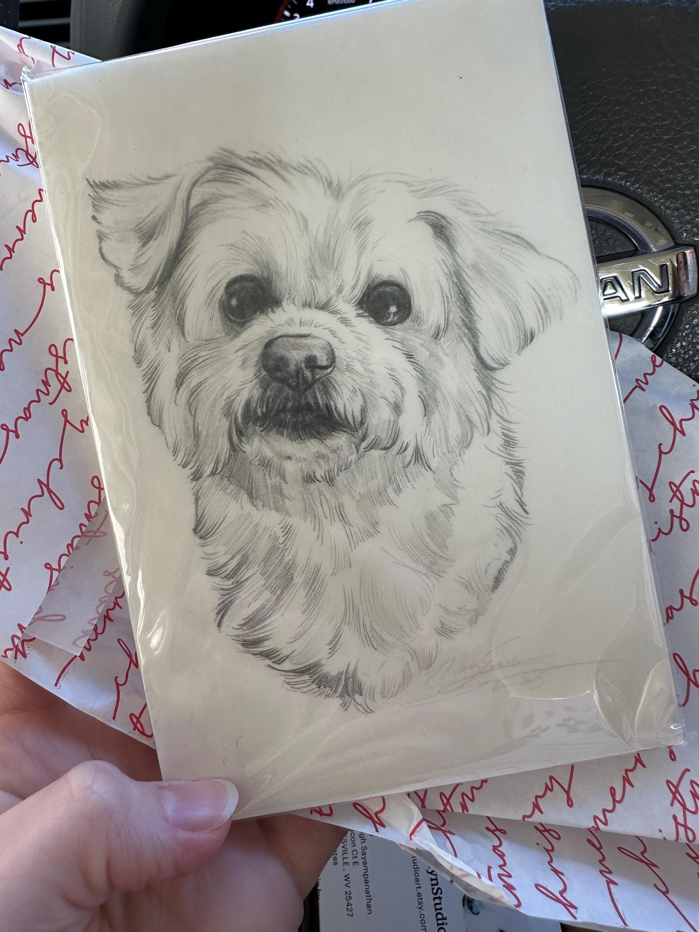 I use pencil to create simple texture and depth. My pet portraits capture the distinctive traits and character of pets. The eyes are the heart of the artwork. I strive to capture their personalities through their eyes. Please note when I sketch the pet portrait, the background of the photo will be removed. The subject, of the portrait, is the only portion of the photo that will be sketched.